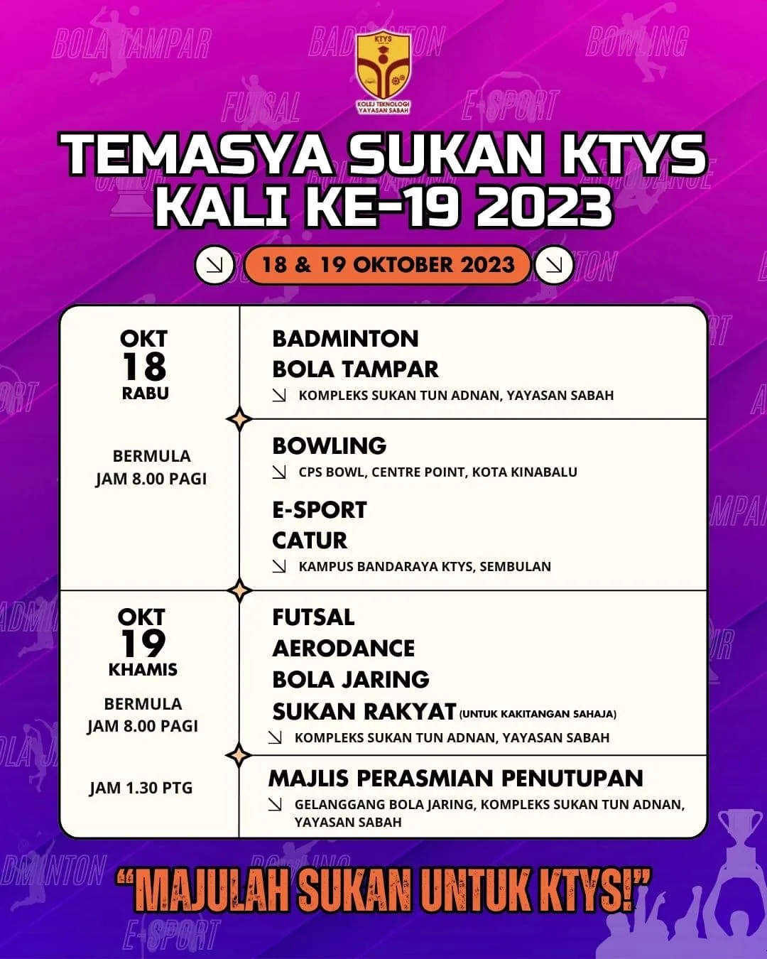 TEMASYA SUKAN TAHUNAN KTYS KE-19 2023 – 18&19 Oktober 2023