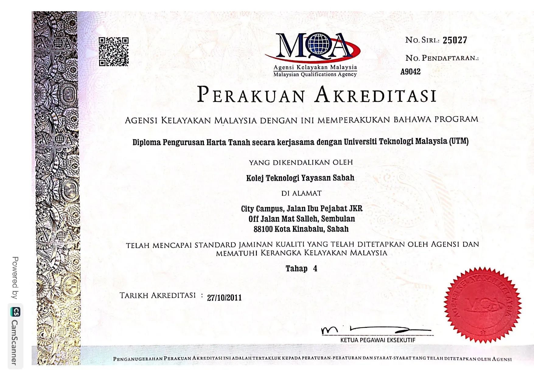 • DIPLOMA PENGURUSAN HARTA TANAH SECARA KERJASAMA DENGAN UNIVERSITI TEKNOLOGI MALAYSIA (UTM) – JPT/BPP(R3/0734/4/0005)(A9042)/7/28