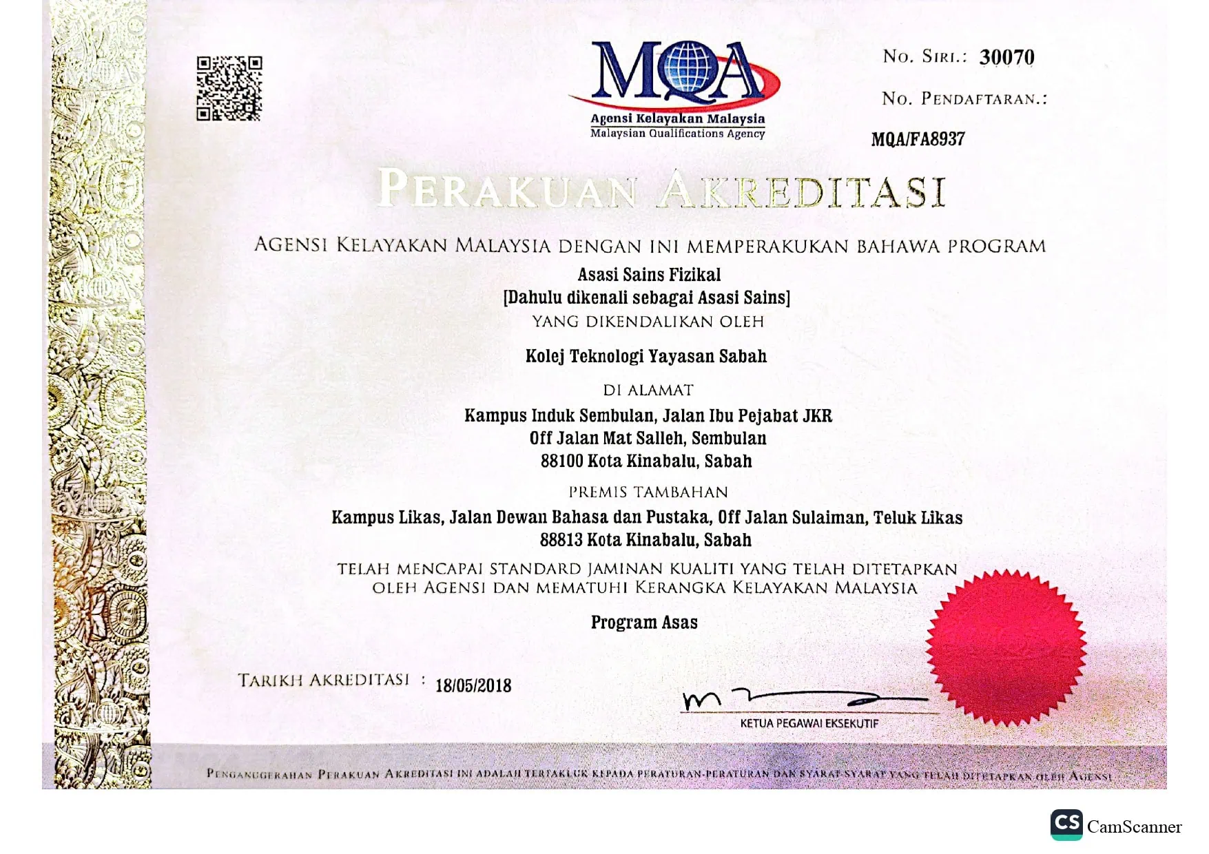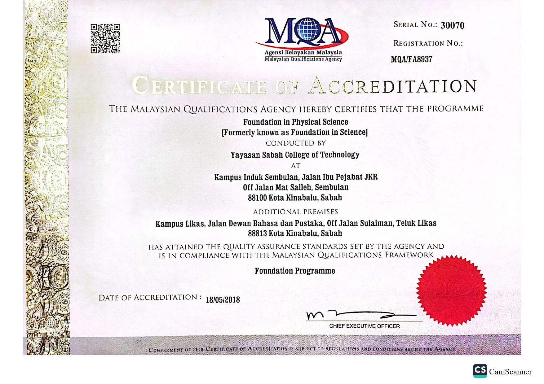• FOUNDATION IN PHYSICAL SCIENCE (ASASI SAINS FIZIKAL) – JPT/BPP(R/0011/30183)(MQA/FA8937)/3/27